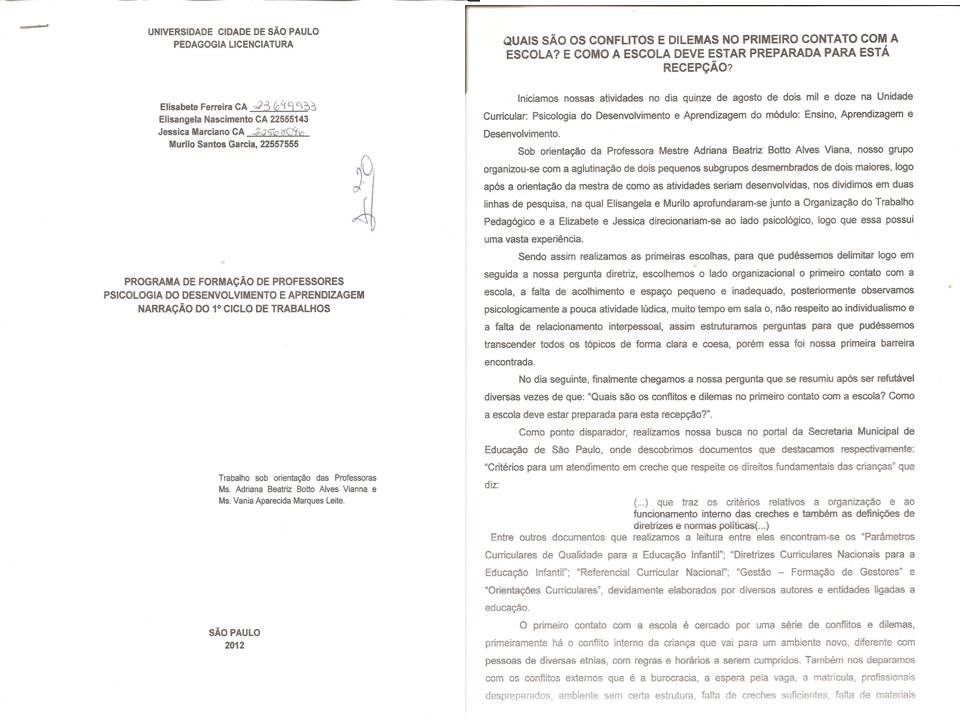 Trabalho sob orientação das Professoras Ms. Adriana Beatriz Botto Alves Vianna e Ms. Vania Aparecida Marques Leite.