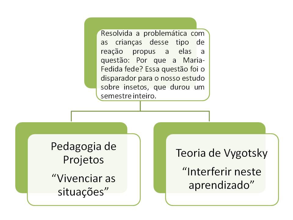 Nosso após as devidas analises no estudo de caso temos a expor que referente ao caso Maria Fedida fica nítido em alguns trechos a presença de Vygotsky e Pedagogia de Projeto, como por exemplo: