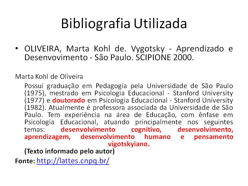 3. OLIVEIRA, Marta Kohl de. Vygotsky - Aprendizado e Desenvovimento - São Paulo. SCIPIONE 2000.