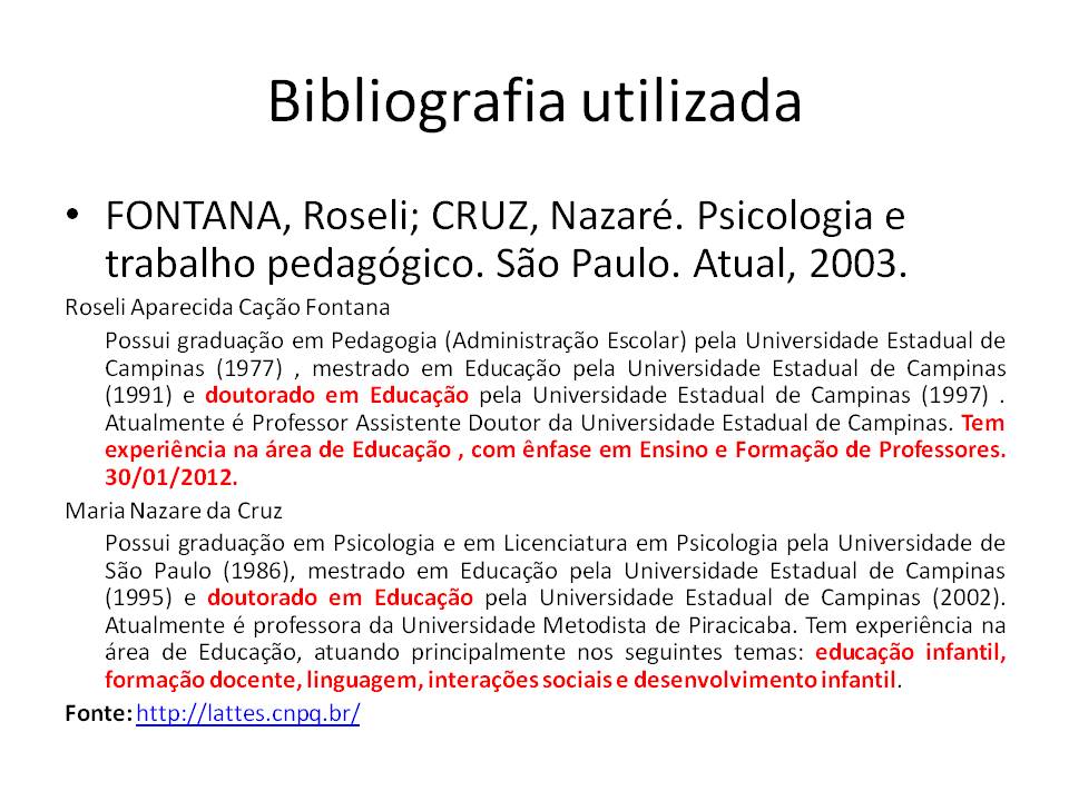 2. FONTANA, Roseli; CRUZ, Nazaré. Psicologia e Trabalho pedagógico. São Paulo. Atual 2003.